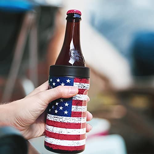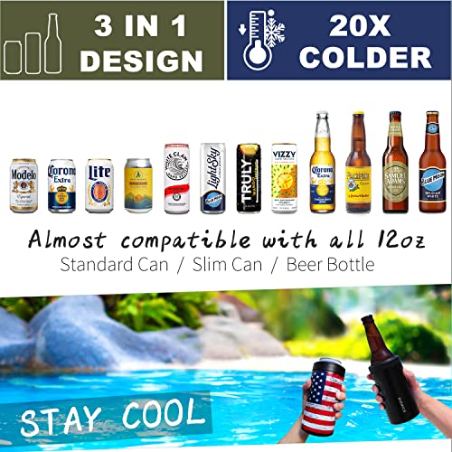 3-IN-1 Insulated Can Cooler - Signice Double Walled Vacuum Insulator Stainless Steel Slim Can Cooler for 12 Oz Skinny Tall Can/Standard Regular Can/Beer Bottle (Flag)