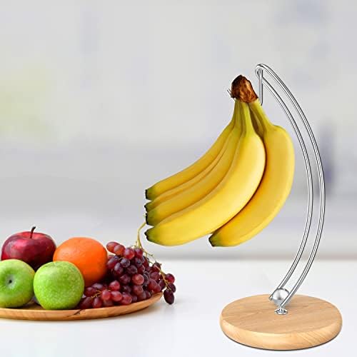 Signice Banana Holder Stand - Newest Patented Modern Banana Tree Hanger with Wood Base Stainless Steel Banana Rack for Home Kitchen Use,Doesn't Tip Over (Silver)